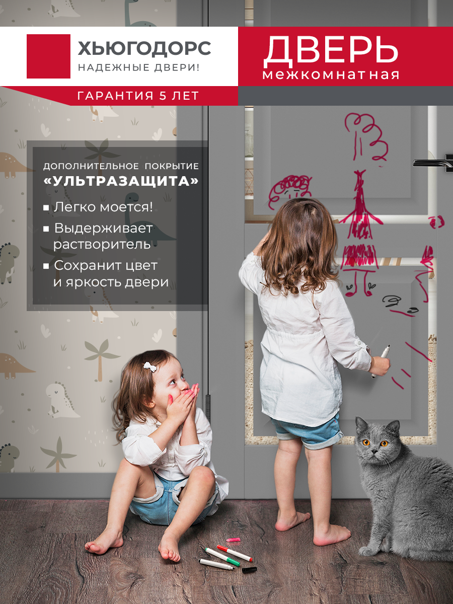 Двери ХЬЮГОДОРС прослужат несколько десятков лет, сохранив яркость и насыщенность цвета, прочность и стабильность конструкции. Премиальный уровень характеристик подтверждается повышенной гарантией - 5 лет.