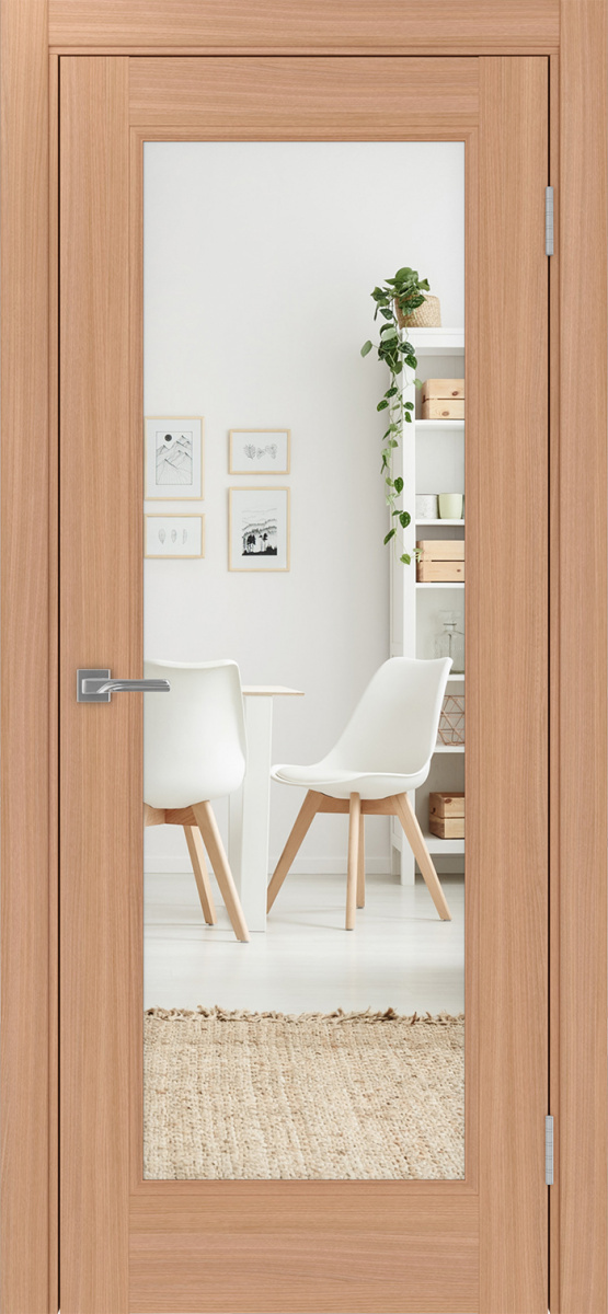 Такой вариант можно считать очень практичным и универсальным, поскольку подходит он к самым разным интерьерам в оформлении помещений. Часто такую дверь ставят в небольших комнатах, чтобы зрительно увеличить пространство.