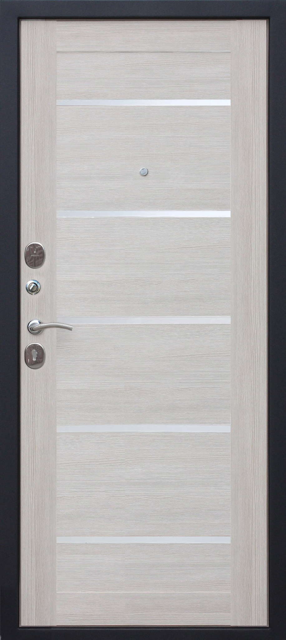 Качественная российская дверь со стильной внешней отделкой муар черный и красивой декоративной панелью толщиной 22 в цвете лиственница беж. Прекрасно подойдет для установки в квартиру. Надежная модель, которая прослужит долгие годы.