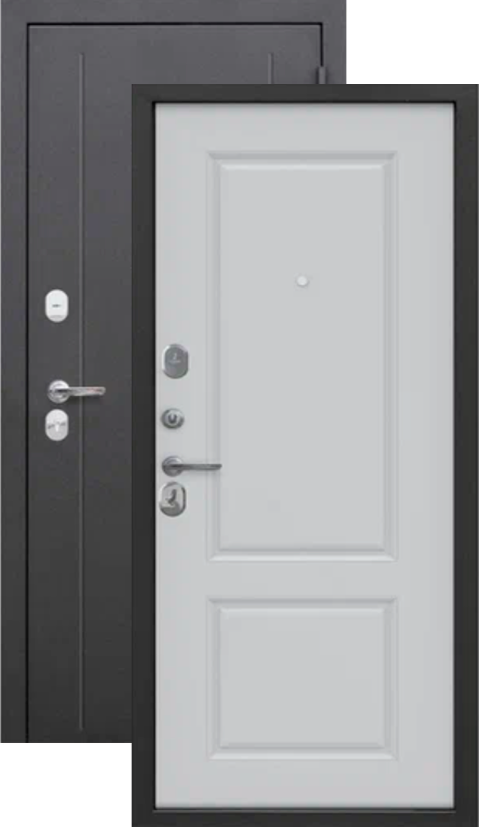 Дверь имеет хорошую прочность из-за толщины металла 1,2 мм. Оснащена двумя надежными замками, минимум один из которых имеет высший класс взломостойкости по ГОСТ 5089-2003 (4 класс). Есть ночная задвижка — дополнительная защита от взлома. Никто не сможет зайти, вскрыв замок, когда вы дома.