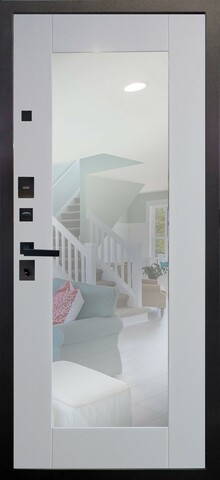 Теплая дверь входная Аргус Блэк Милли зеркало, 2 замка, 2 мм металл, (черный муар+белый роял вуд)