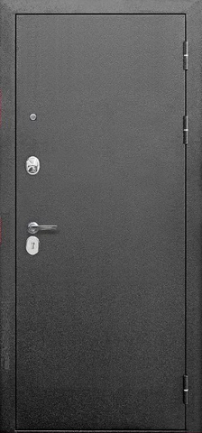 Дверь имеет хорошую прочность из-за толщины металла 1,2 мм. Оснащена двумя надежными замками, минимум один из которых имеет высший класс взломостойкости по ГОСТ 5089-2003 (4 класс). Есть врезная броненакладка, защищающая цилиндровый замок от высверливания. Она утоплена в дверное полотно, поэтому ее практически невозможно сбить. Есть ночная задвижка — дополнительная защита от взлома. Никто не сможет зайти, вскрыв замок, когда вы дома.