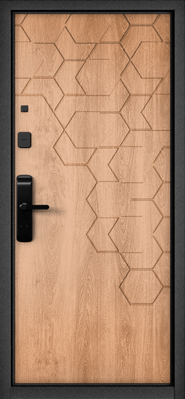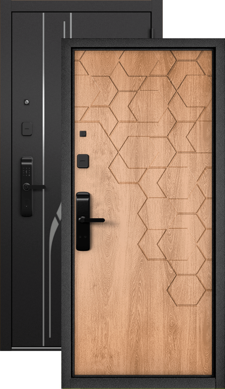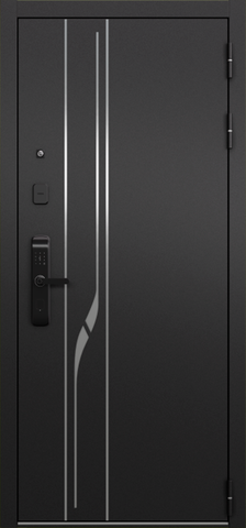 Повышенной надежности российская дверь со стильной внешней отделкой муар черный и красивой декоративной панелью толщиной 6 в цвете дуб шале натуральный. Прекрасно подойдет для установки в квартиру. Солидная модель, которая хорошо защитит и подчеркнет статус.