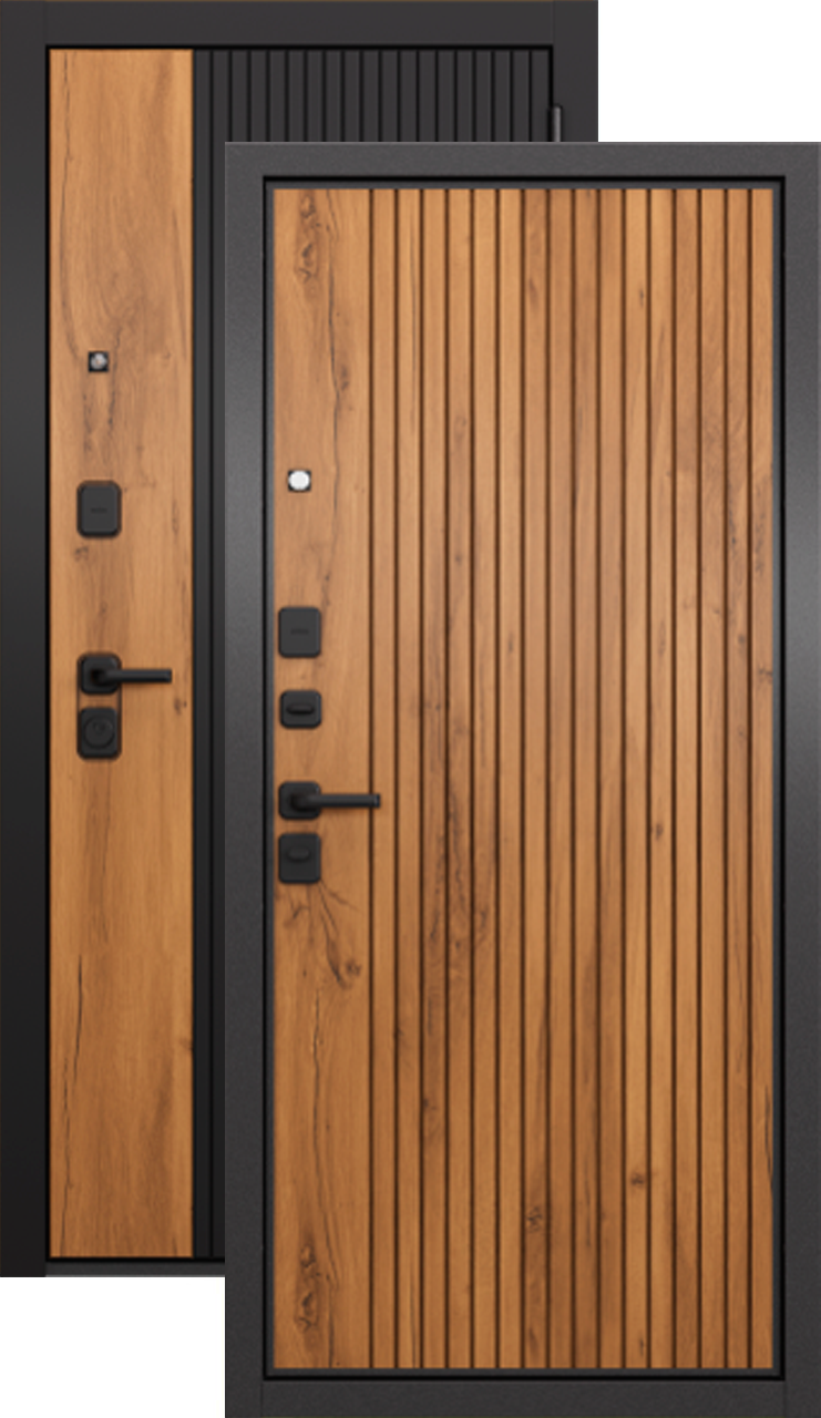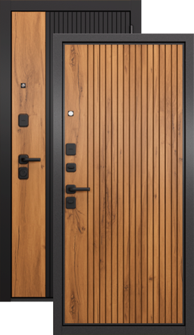 Повышенной надежности российская дверь c красивой декоративной панелью толщиной 10мм в цвете дуб галифакс медовый. Прекрасно подойдет для установки в квартиру. Солидная модель, которая хорошо защитит и подчеркнет статус.