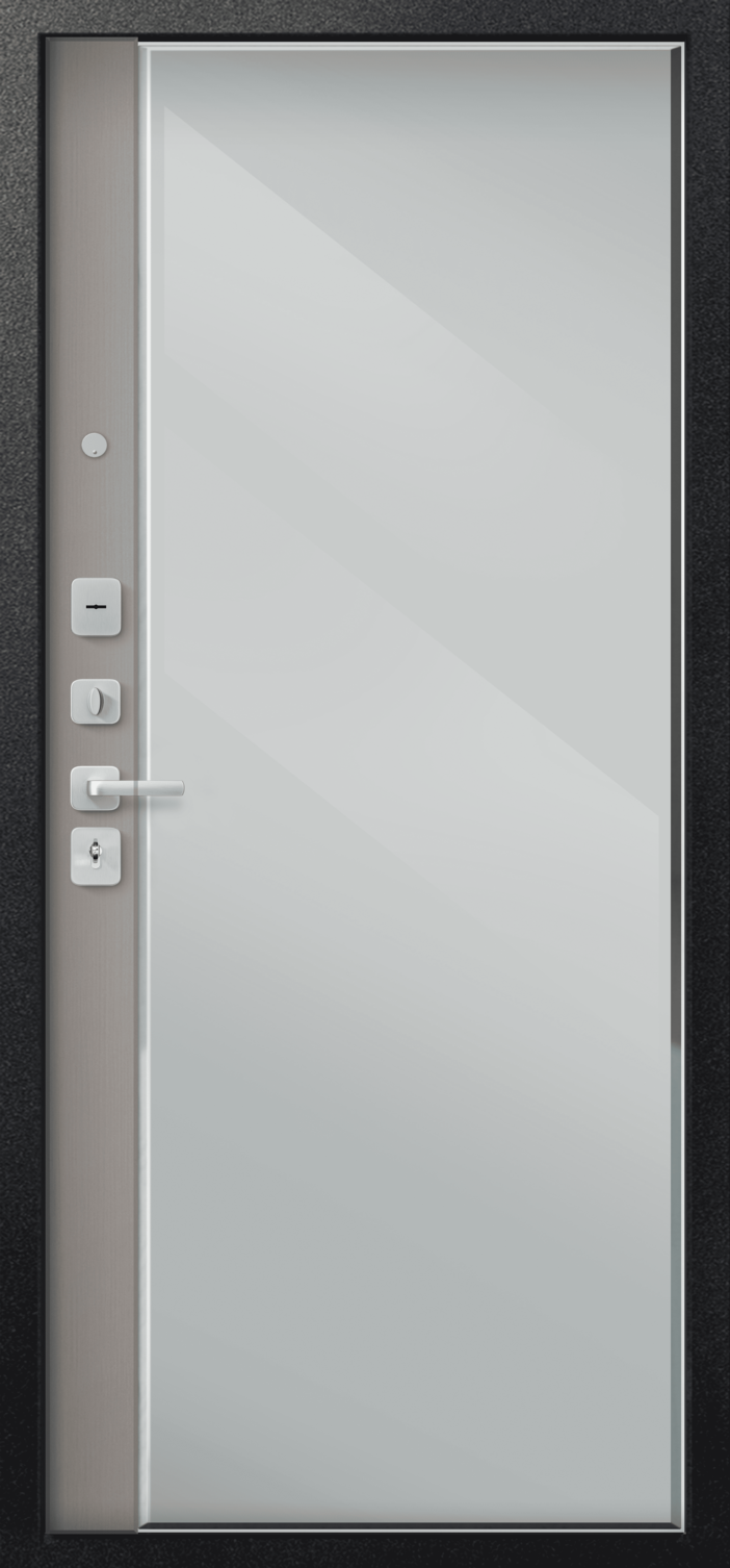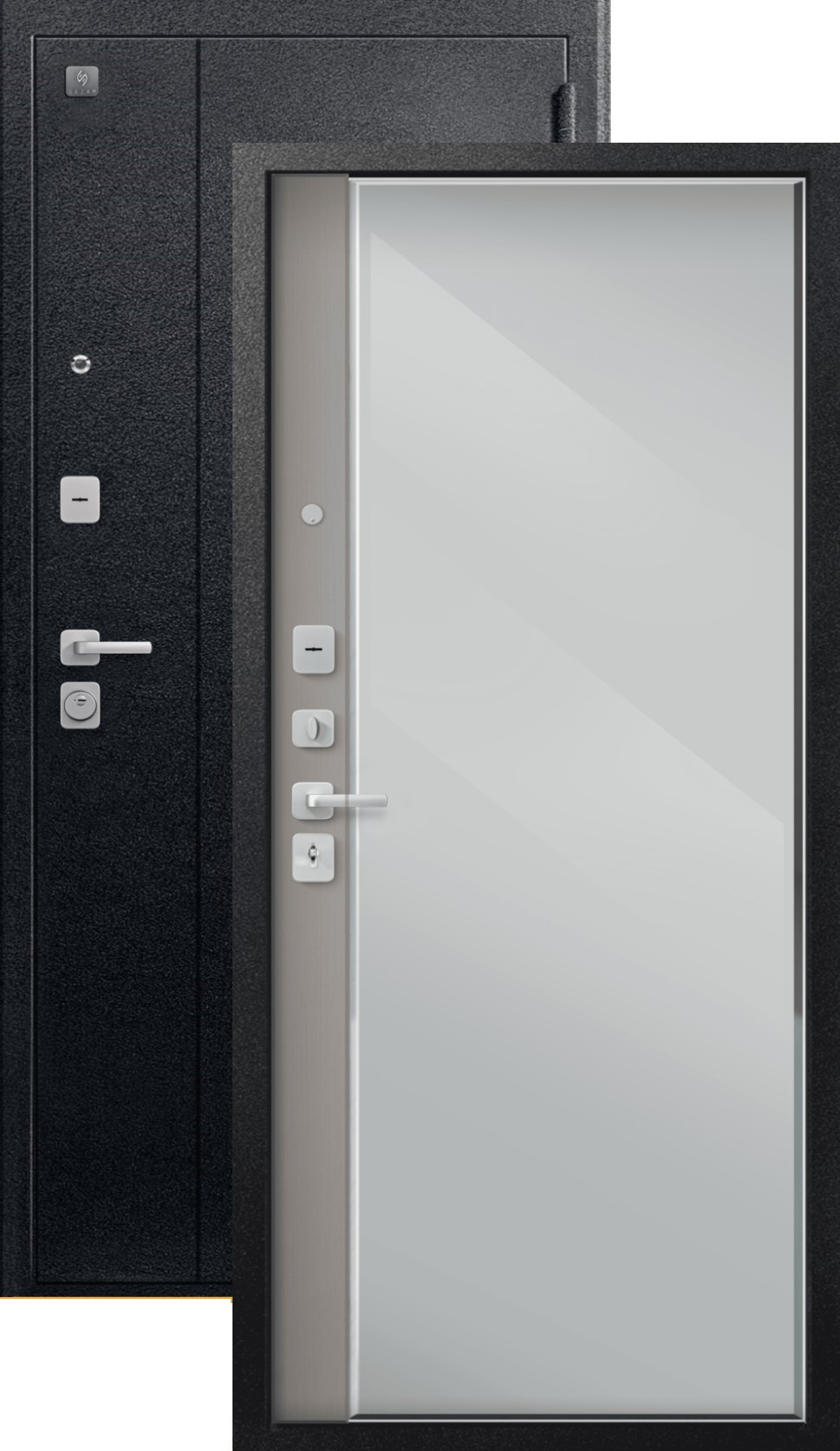 Качественная российская дверь с большим зеркалом на внутренней панели со стильной внешней отделкой муар черный. Прекрасно подойдет для установки в квартиру. Надежная модель, которая прослужит долгие годы.