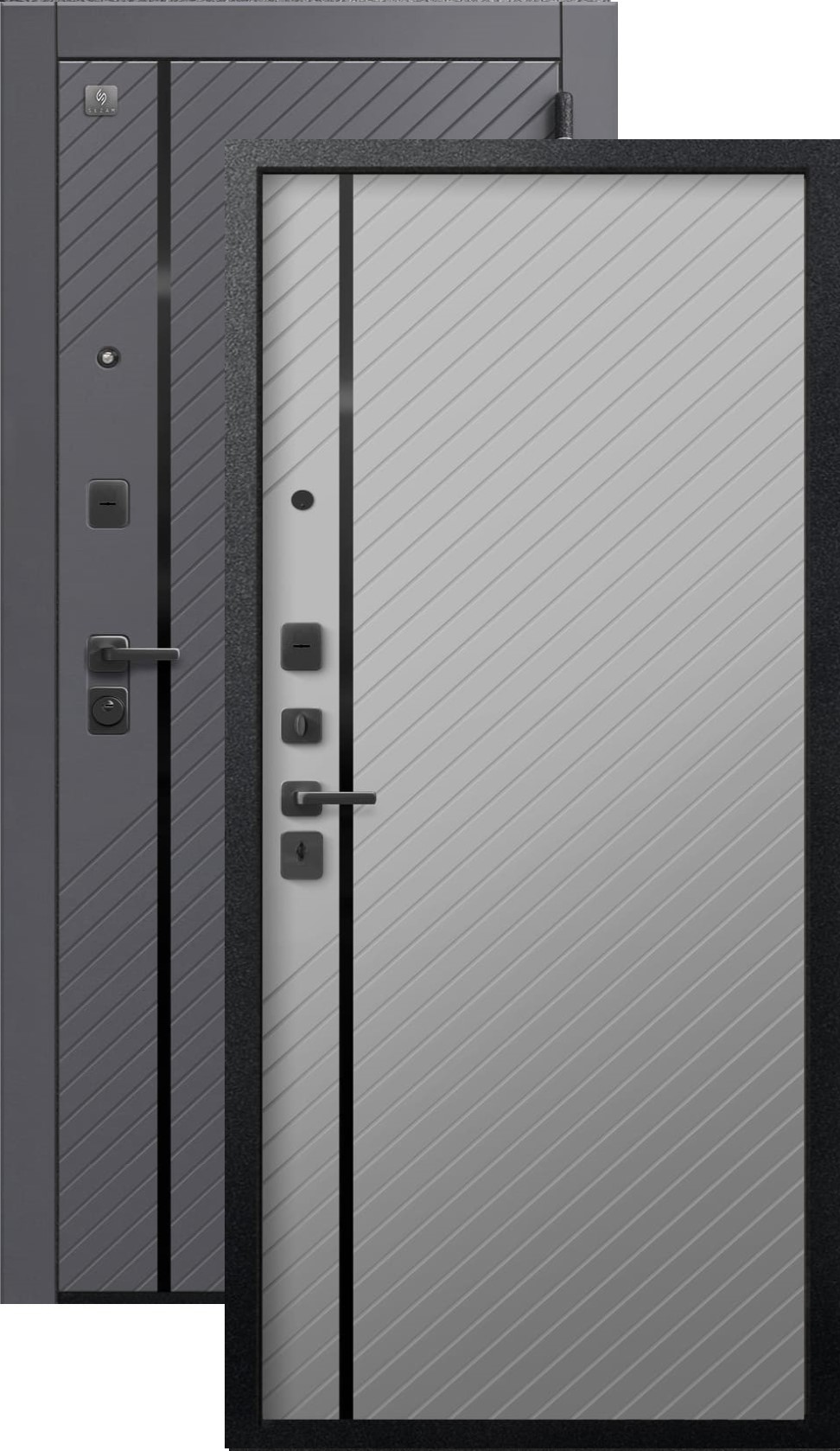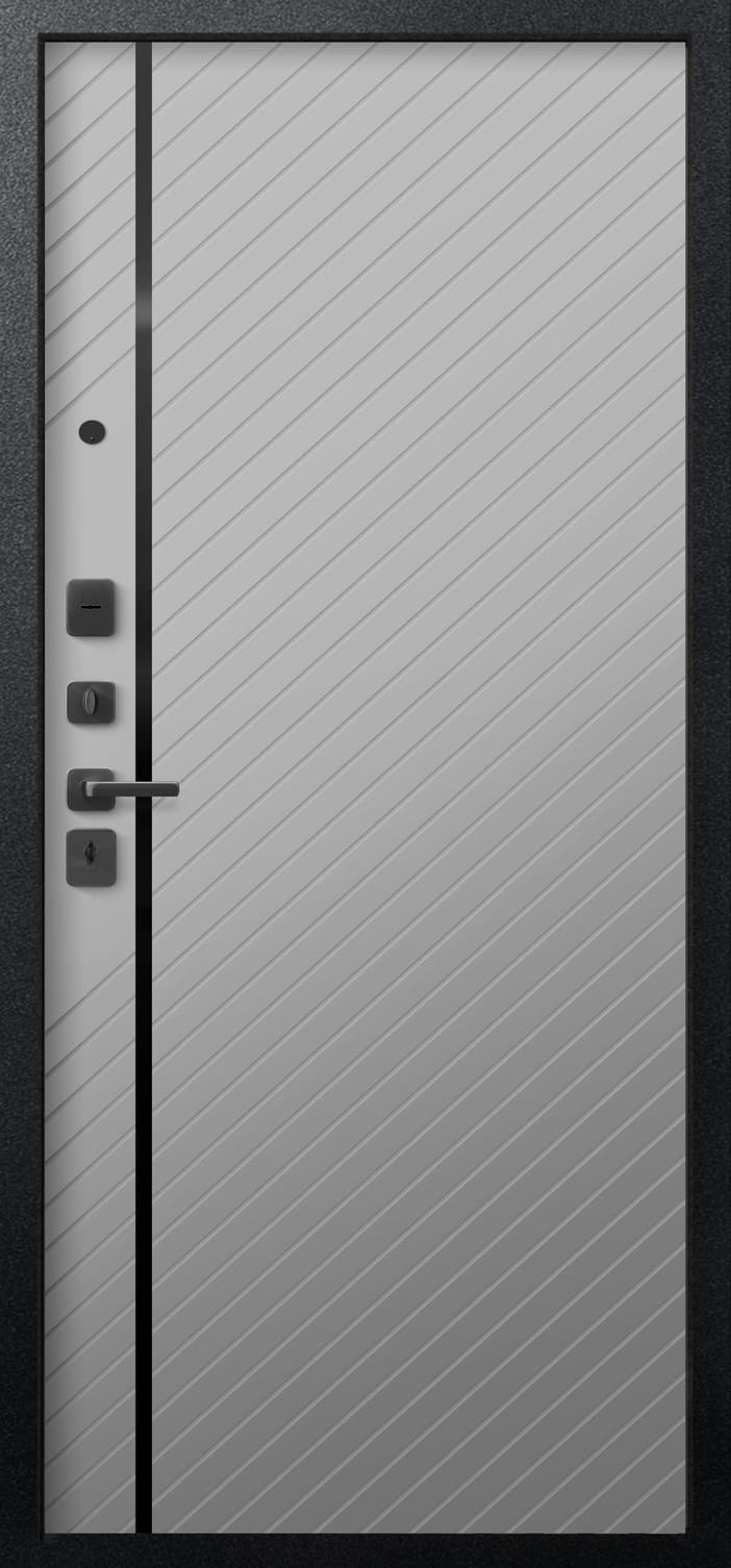 Повышенной надежности российская дверь со стильной внешней отделкой муар черный/кашемир графит и красивой декоративной панелью толщиной 16 в цвете кашемир сильвер. Прекрасно подойдет для установки в квартиру. Солидная модель, которая хорошо защитит и подчеркнет статус.
