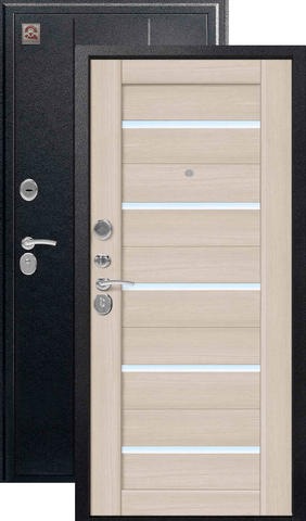 Легкая, не очень прочная дверь, имеет небольшую толщину металла 1 мм. Оснащена двумя надежными замками, минимум один из которых имеет высокий третий класс взломостойкости по ГОСТ 5089-2003 и обладает повышенными охранными свойствами. Есть врезная броненакладка, защищающая цилиндровый замок от высверливания. Она утоплена в дверное полотно, поэтому ее практически невозможно сбить. Есть ночная задвижка — дополнительная защита от взлома. Никто не сможет зайти, вскрыв замок, когда вы дома.
