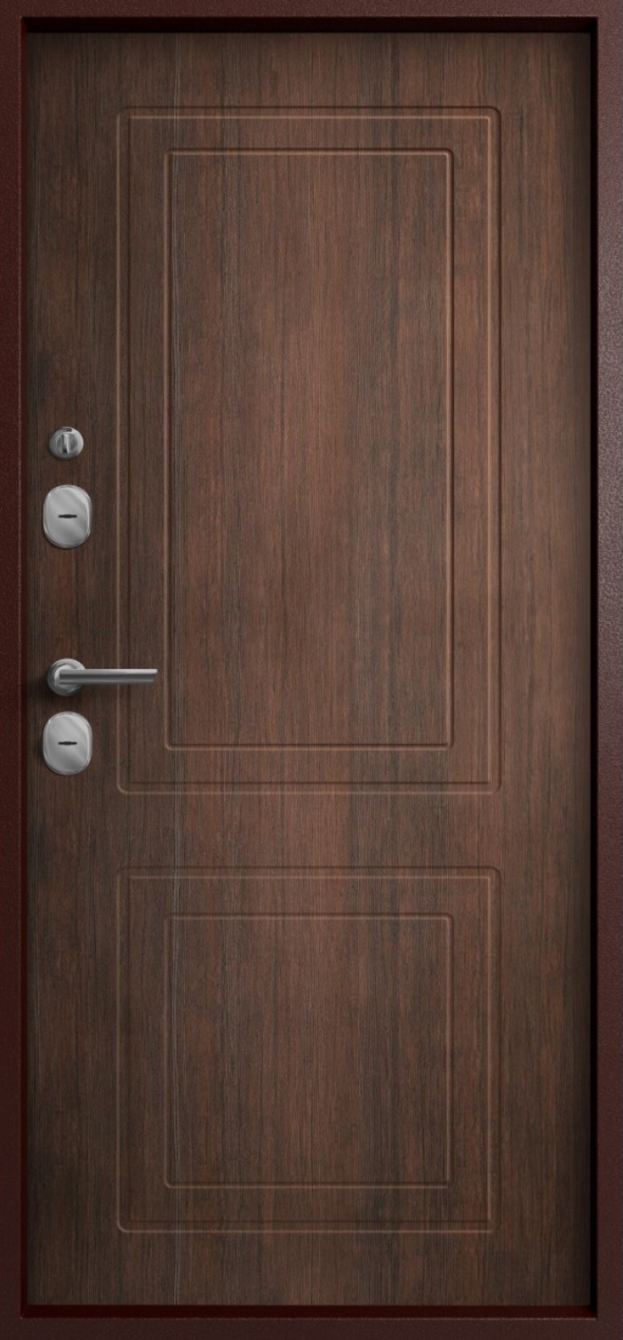 Толстая российская термодверь превосходно сохраняет тепло и обеспечивает надежную защиту от промерзания. Имеет двойной терморазрыв по полотну и коробу, проверена сибирскими морозами. Прекрасно подойдет для установки в частном доме, так как не пропускает холод и не обмерзает.