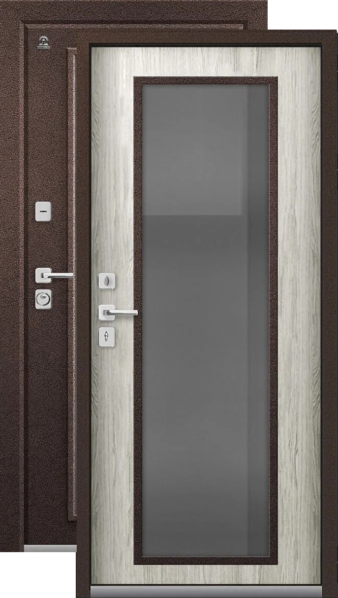 Толстая российская термодверь превосходно сохраняет тепло и обеспечивает надежную защиту от промерзания. Имеет двойной терморазрыв по полотну и коробу, проверена сибирскими морозами. Прекрасно подойдет для установки в частном доме, так как не пропускает холод и не обмерзает.